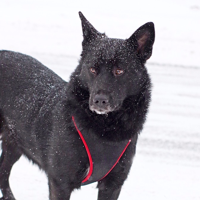 Герда - метис чёрной норвежской лосиной лайки.