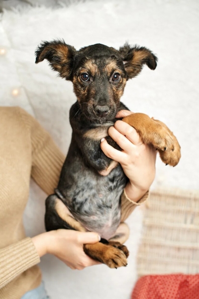 Кайла на самом деле имеет пушистую мягкую шубку, но временно осталась без неё. Но новая уже отрастает и будет ещё красивей старой . Девочка здорова, частично привита, отлично справляется с пелёнками. Сейчас она весит около 4 кг, а вырастит небольшой, предположительно до 15 кг.