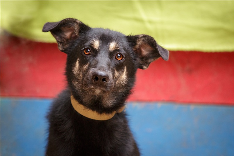 Айрис маленькая, нет еще и года, рост в холке 45 см, вес 12 кг. Она стерилизована и привита.